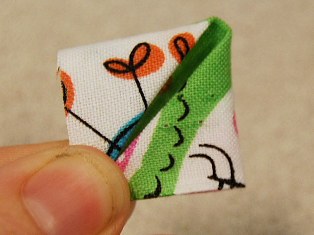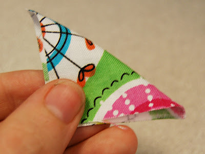 Step 1. Cut out 6 squares from the fabric of choice. I think these were about 2.5 inch squares. I tend to like to make them a little smaller than these, but start on the big side and go smaller when you get used to the folding.