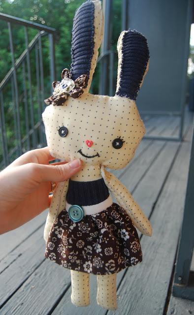 My Recycled Sweater Doll (more like recycled blouse doll actually) Misty, is now available in my new Etsy shop! I decided not to do one big shop update, instead I’ll be listing new items all week. Save myself a little sanity that way