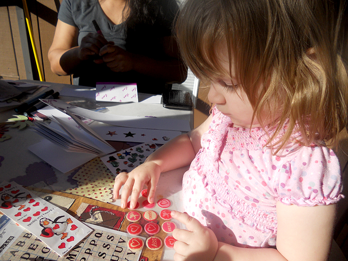 I did it! I successfully hosted the first craft night! It was so much fun. This month we made Valentine’s Day Cards for Etsy’s Special Delivery: Share Your Love 2011. We made a total of 45 cards!